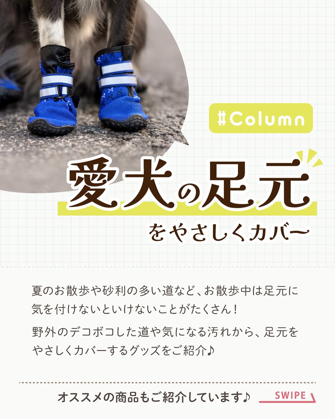 少し涼しげに見える土や砂の温度も実は同じです。60℃を超えることもあります。海や山など、ご旅行の際は肉球を守る準備もしてあげられるよう、推奨していきましょう。
