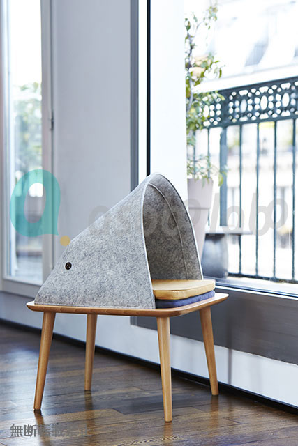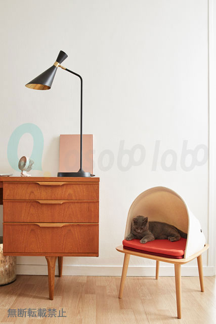 頑丈な木と100%ウール、快適でエレガントなスタイルで猫の飛び乗りなど動きのあるシーンを演出し、心地よく眠ることができるベッド。