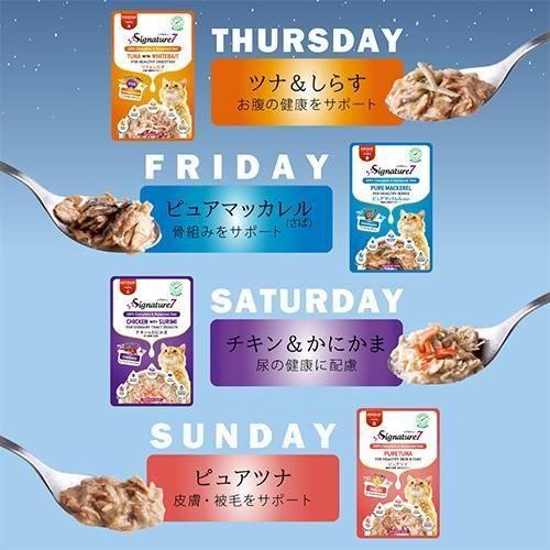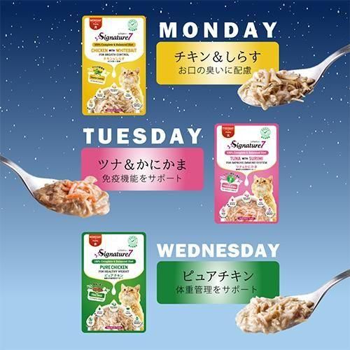 愛猫の好みや体調に合わせて、1週間、毎日違う味が楽しめます♪