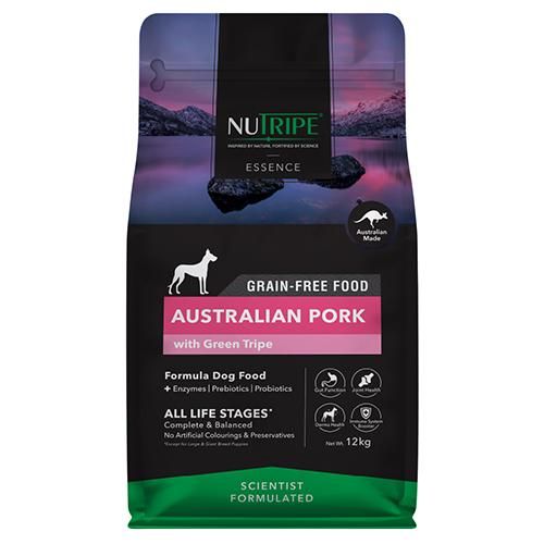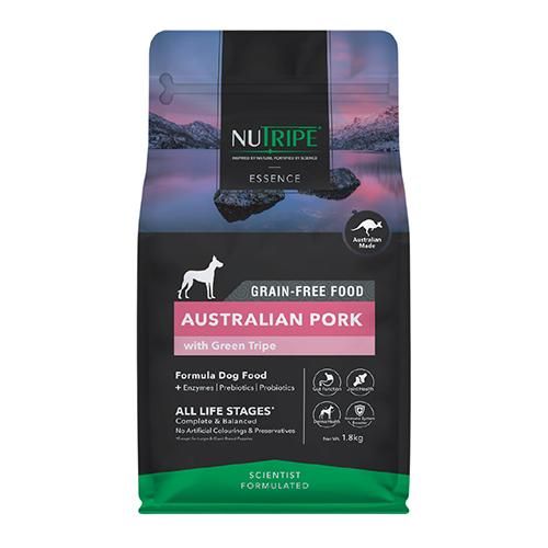 【原材料】オーストラリア産ポーク、グリーントライプ、サツマイモ、鶏脂、ナチュラルフレーバー、サーモンオイル、パンプキン、ほうれん草、ブロッコリー、リンゴ、クランベリー、ウコン、塩化カリウム、緑イ貝、ビタミン・ミネラル類(ビタミンA、D、E、K、B1、B2、B3、B5、B6、B12、葉酸、ビオチン、クエン酸、硫酸亜鉛、硫酸鉄、キレート亜鉛、キレート鉄、硫酸銅、酸化マンガン、キレート銅、キレートマンガン、ヨウ素、セレン)、塩化コリン、プレバイオティクス(フラクトオリゴ糖(FOS)、マンナンオリゴ糖(MOS))、タウリン、ケルプ、ユッカシジゲラエキス、L-リジン、酵素(アミラーゼ、プロテアーゼ)、プロバイオティクス(枯草菌)、DL-メチオニン、酸化マグネシウム、ミックストコフェロール、ローズマリーエキス