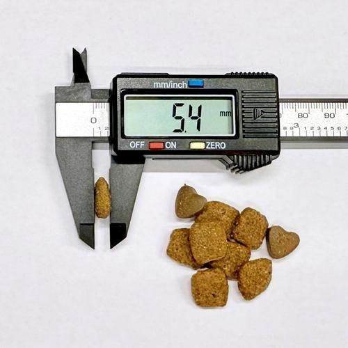 粗タンパク質 21.0%(以上)、粗脂肪 10.5%(以上)、粗繊維 4.4%(以下)、水分 9.0%(以下)、Omega 3 0.89%、Omega 6 3.5%