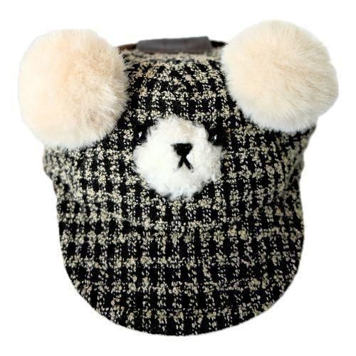 ふわふわのお耳とモコモコのお顔が付いた、くまさんキャップ♪