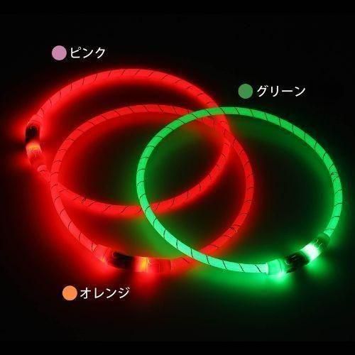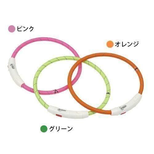 「ループ セイフLEDリング クリア」は、ゴムのような弾力性とプラスチックのような強度を併せ持つTPUでできた夜間お散歩用の首にかけるタイプのLEDライトです。