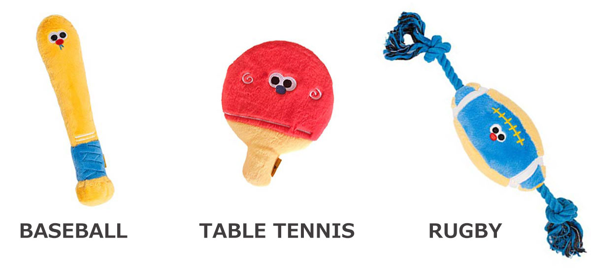 スポーツアイテムをモチーフにしたかわいいぬいぐるみトイ