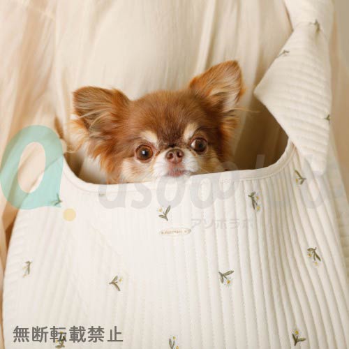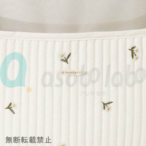 moncheriオリジナルのフラワー刺繍入りのキルティングステッチ生地がナチュラルで可愛らしいスリング。