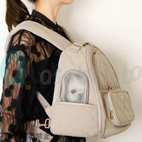 | フロント部分のアーチファスナーを開けるとメッシュの小窓が現れ、メッシュの小窓もファスナーで開けると愛犬ちゃんのお顔が出せる仕様に◎ | 片面サイドも同様小窓式になっており、愛犬ちゃんのお顔が出せる仕様に◎ 外を見ていたい愛犬ちゃんが横からお顔を出せます。 |