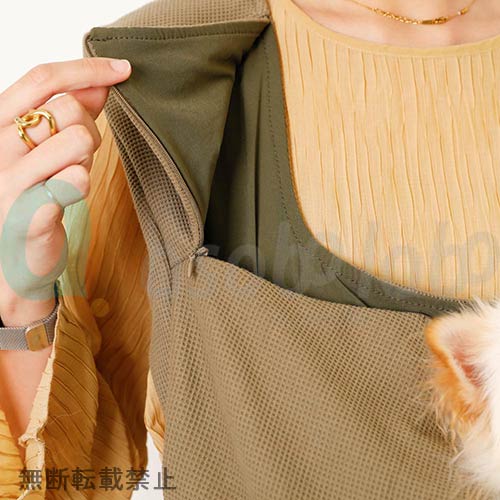 背胴側と内装内側についたファスナーポケットは、飼い主様の小物や貴重品、愛犬ちゃんのマナーベルトやウェットティッシュ、おやつなどを入れるのに便利です。