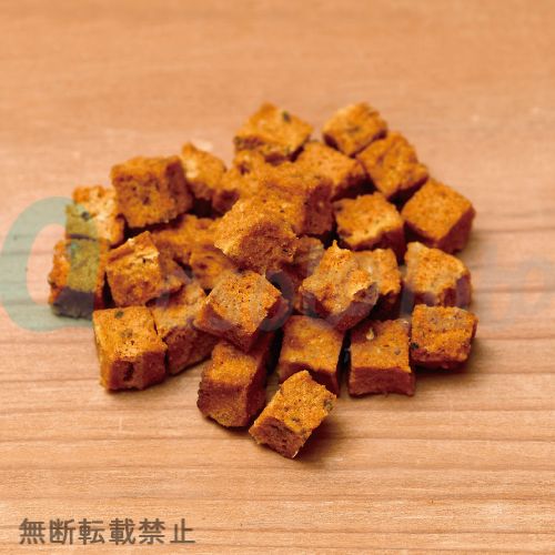 独自製法により特有のニオイを抑え、風味豊かで無添加のサックリした食感の真鯛キューブに仕上げました。