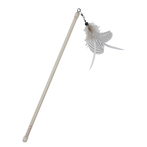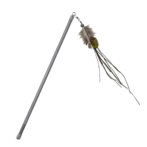 本物の羽が付いた伸縮できる猫用おもちゃ♪