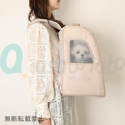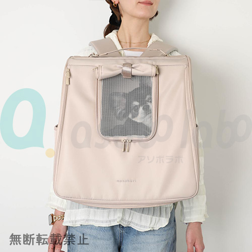 フロント上部分には小窓が付いており、ファスナーを開けるとメッシュの小窓が現れ、メッシュの小窓もファスナーで開けるとワンちゃんのお顔が出せる仕様に◎
