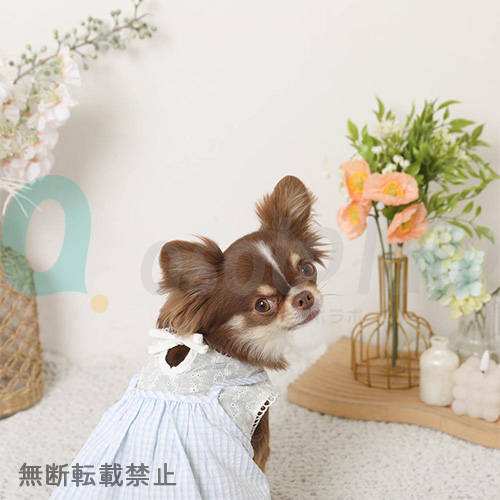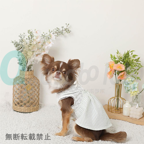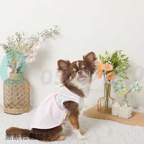 接触冷感素材のお洋服を着せることで、暑い季節のお出かけにもおすすめです。