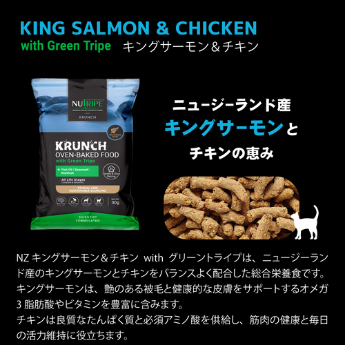 【NUTRIPE】ニュートライプ キャット クランチ オーブンベークド キングサーモン&チキンwithグリーントライプ